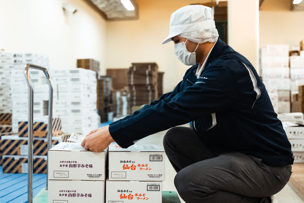 「手打ち」の理念を機械製造に応用し、製品を生み出しています。最終工程では一つひとつ手作業で製品を詰めることで、徹底した目視確認を行い、品質のばらつきを防いでいます。これにより、安心してお召し上がりいただける高品質な商品を提供しています。